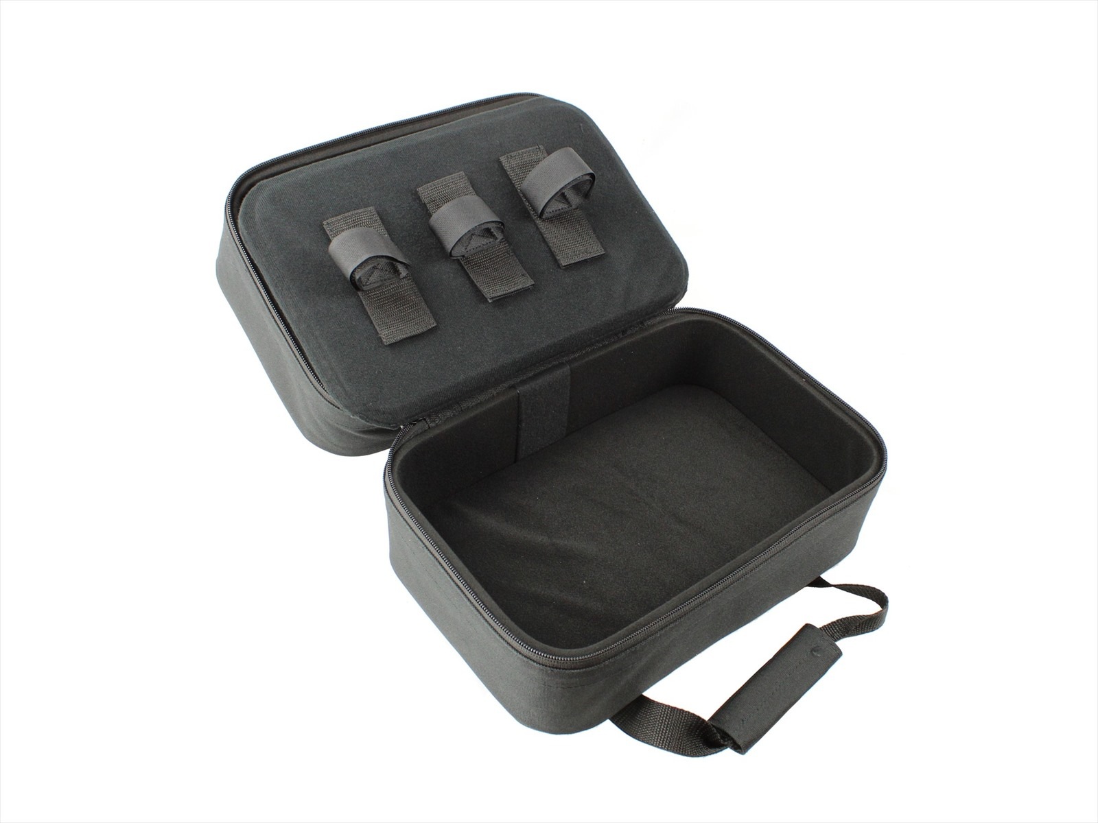 底面内側はスポンジ材を挟んだ上で面ファスナー(マジックテープ)オスが取り付けられる布でできており、付属の銃固定バンドや空スペース保護用の柱型スポンジ材等を自由な場所に取り付けられます。