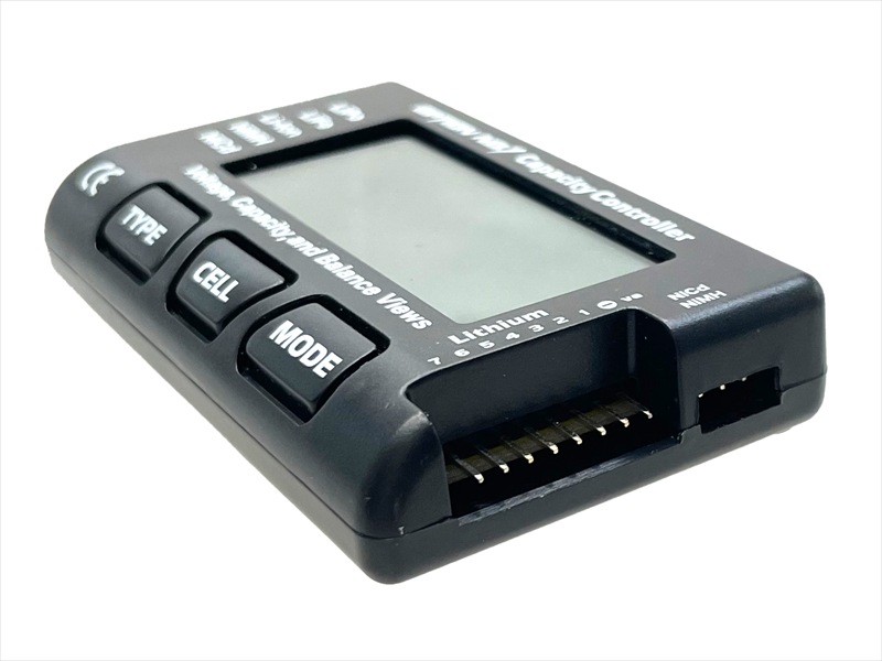バッテリーの残量、全体電圧、単セル電圧、セル間の電圧差 (バランス)を容易に確認できるバッテリーチェッカーです。
