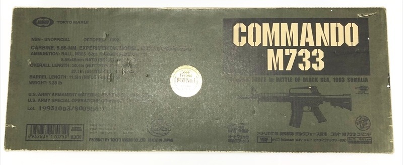 M733というのは、コルト社が自社製品につけたプロダクトナンバーで、700番台はM16A2をベースとしたモデルです。同様のショートカスタムを施したM4A1がアメリカ軍の制式採用となる前、1990年代前半に特殊部隊によって非公式ながら使用されていたM733を、電動ガンとしてモデルアップしました。民間用のフレーム刻印には、デルタフォース隊員が素性を一切隠した個人として購入する事実を反映し、ディテールだけでなく設定にもリアリティを追求しています。