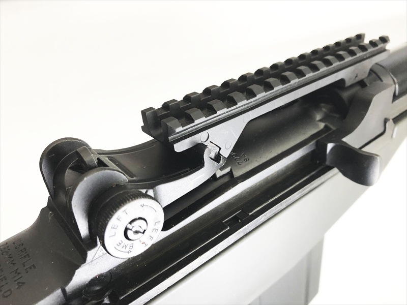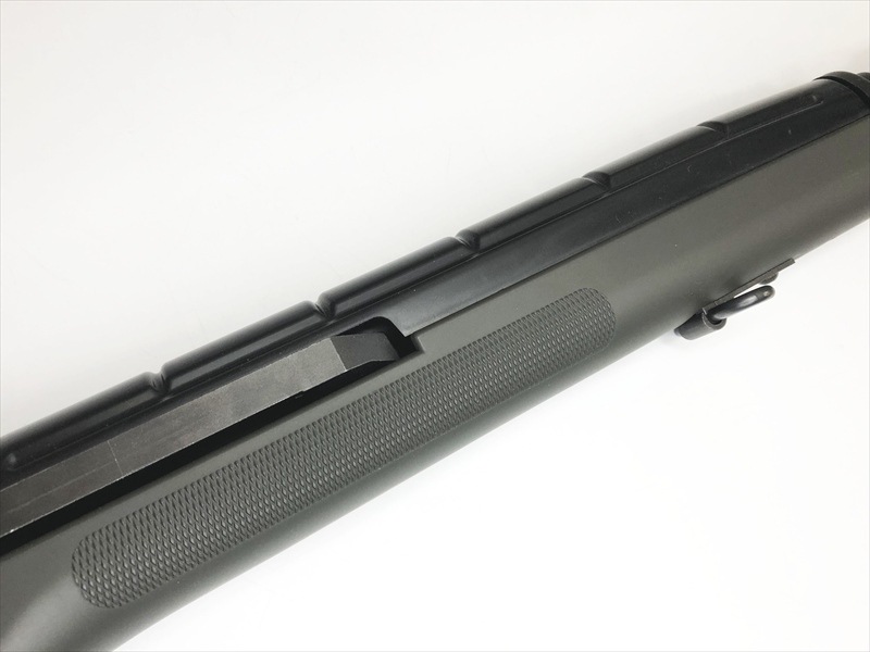 回転しながらフルストロークで後退するボルトを再現。心地いい金属音が雰囲気を盛り上げます。また、トリガー前に配したセフティレバーやショルダーレスト&バットプレートには本物同様の機能も付加。リアサイトはダイヤルで左右上下に調整可能なフルアジャスタブルタイプです。