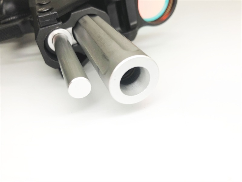 アウターバレルやスクエアハンマーにクロームメッキ仕上げを採用し、ブラックのボディとのコントラストが目を楽しませます。