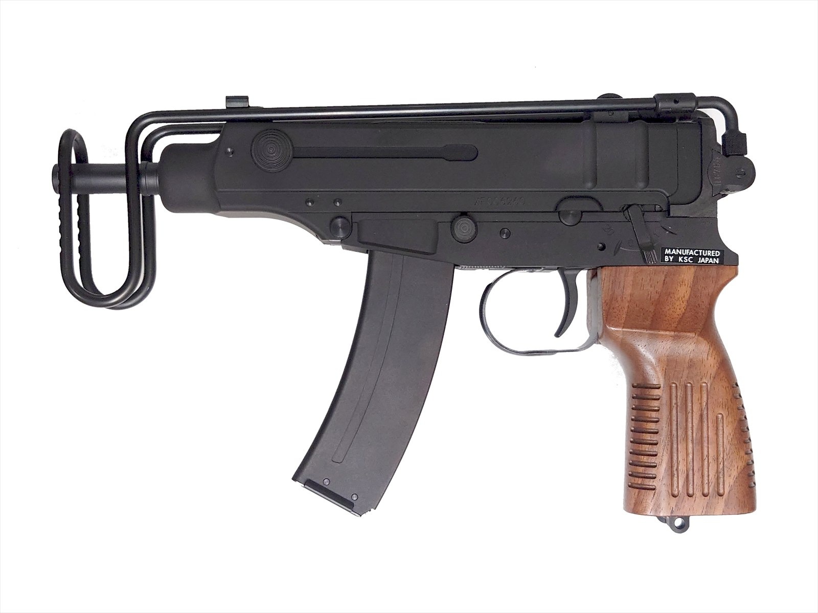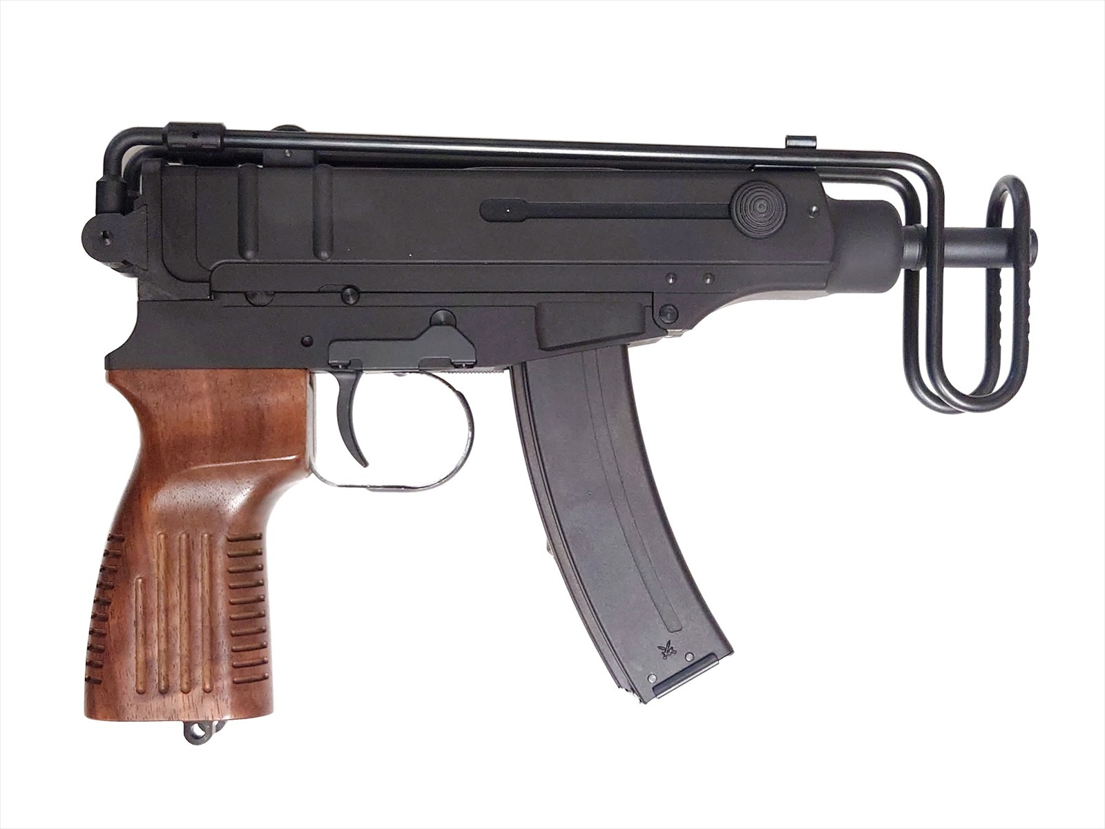 実銃の迫力をHW樹脂で完全再現した「Vz61 HW」に、国内メーカー製のウォルナット木製グリップを装着して登場。金属的な質感が特徴であるHW製のレシーバーと木の温もりを持つウォルナット製のグリップとの相性は抜群です。グリップの表面は精密に加工され、より手に馴染みやすくなっているのも注目ポイントです。当然、実射性能もマグネシウムボルトとシステム7エンジン、焼結パーツ等を採用し、最高のパフォーマンスが楽しめます。