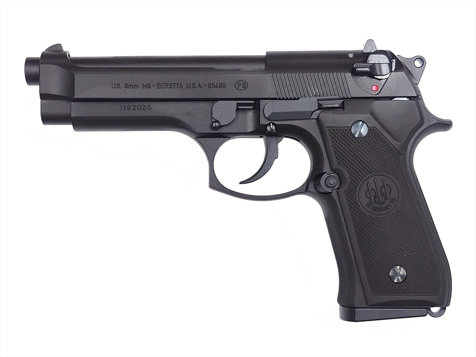 刻印は考証に基づいた1989年以降の”Made In USA”タイプとなっており、ハンマーピンが大型化された92FS仕様のモデルを再現したものとなっています。