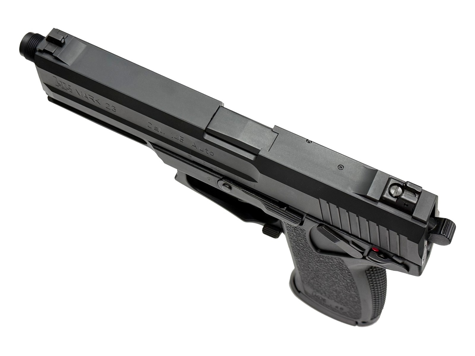 規格外のボディに強烈なCO2パワーユニットを搭載した「MK23」シリーズにコマーシャルモデルが登場。スライド左側面に打刻されているコマーシャルモデル特有の刻印や、フロントサイト・リアサイトそれぞれの側面の円形の窪みなどディテールを忠実に再現しました。さらに、前後サイトの調整機能やダミー可動するファイアリングピン・エキストラクターなどが手にした時のリアリティをより高めます。パワーソースであるCO2の力強さと、KSCピストル最大のビックボアシリンダーによる迫力満点のブローバックが楽しめる一挺です。