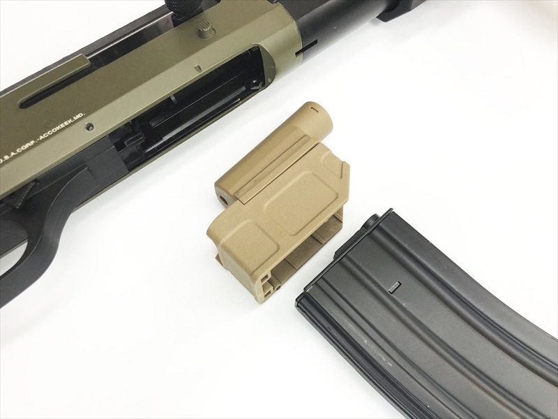 マガジンはマルイ/CYMA製のシェル型マガジンが使用可能です。
