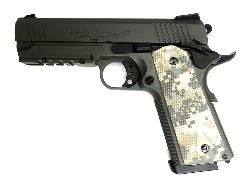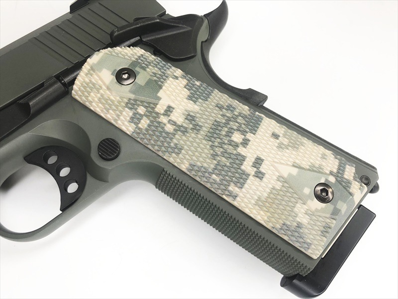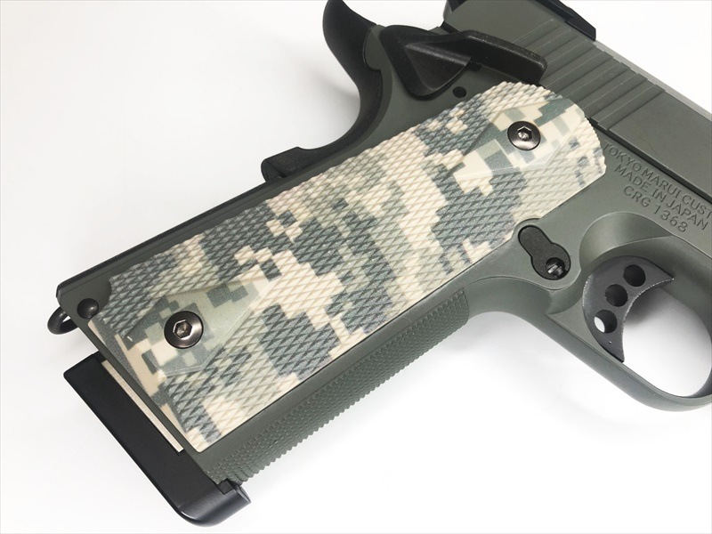 BDUなどに使用されているACU(Army Combat Uniform)パターンを施した、ダイヤモンドチェッカータイプのグリップを装備しています。
