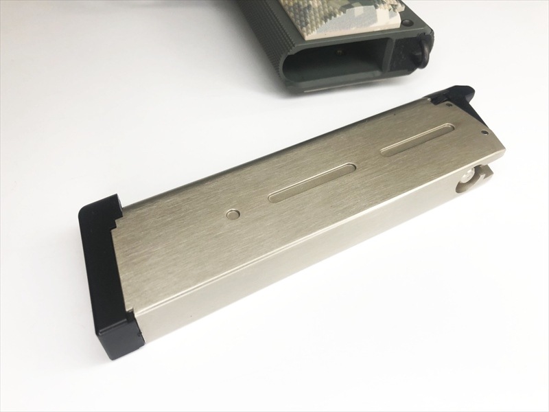 ニッケルメッキが施された、装弾数28発のマガジンが付属。