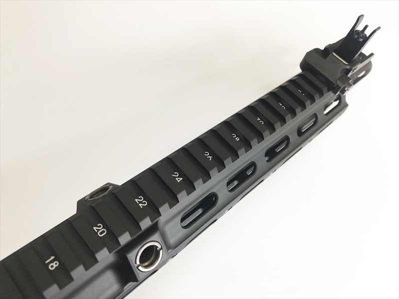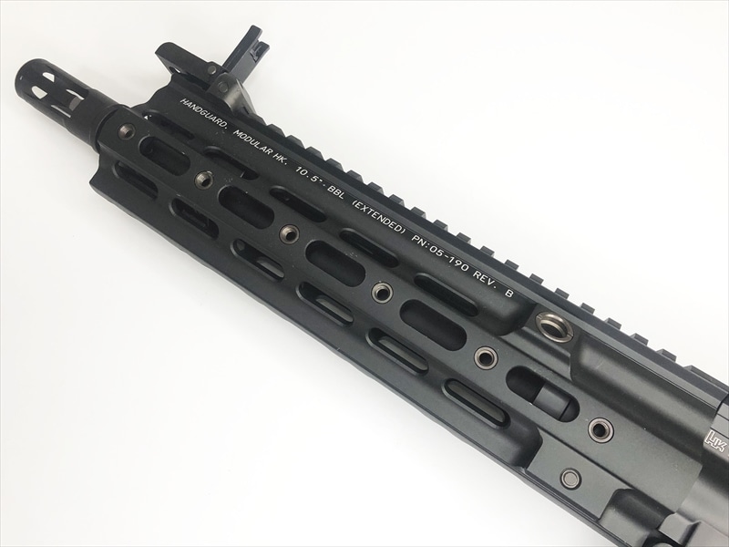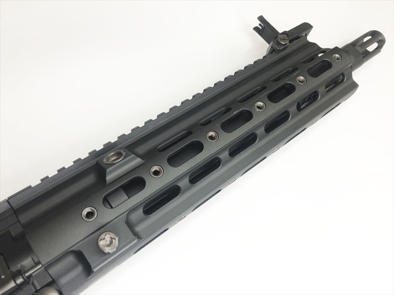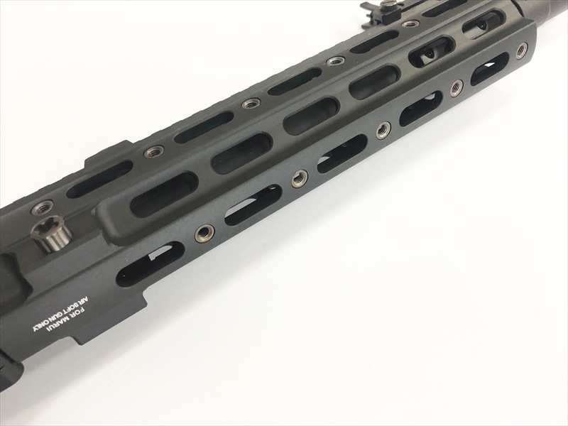 ハンドガードは、レイル脱着式のSMR HKタイプを採用。レイルの設置を必要最小限にすることで、ハンドガード部のスリム化や軽量化を実現しています。アディショナルレイルはロング1枚とショート2枚の計3枚が付属。また、本物を採寸することでディテールの再現性も高めています。