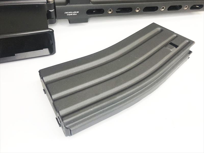 装弾数82発、ホンモノ同様のスチールプレス製アウターケースを採用したマガジンが付属します。※電動ガン スタンダードタイプとはマガジンの互換性がありません。