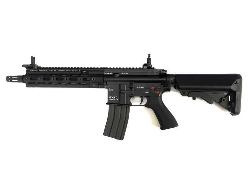 左右どちらの手でも操作できるアンビセレクターや、トリガーガードの開閉機能など、HK416Dならではのギミックをデルタカスタムにも反映。また、クレーンタイプ・ストックは長さを6段階に調整可能です。