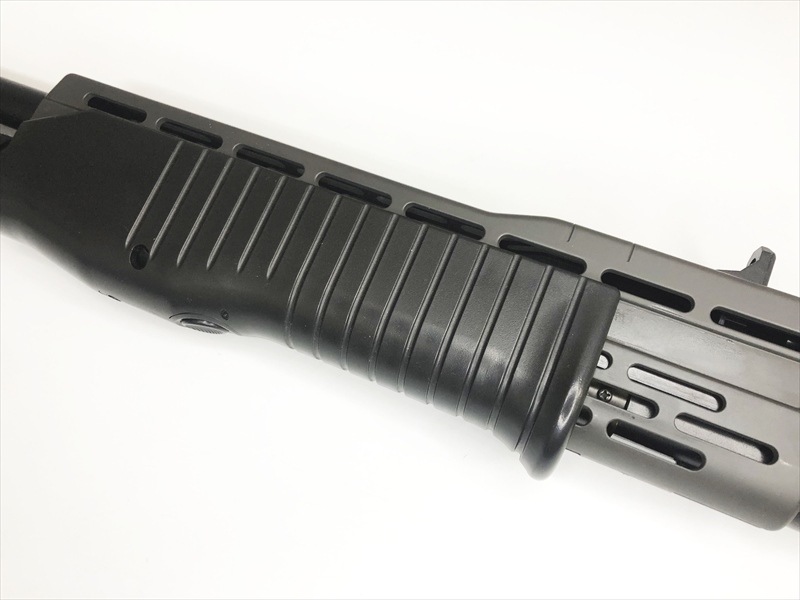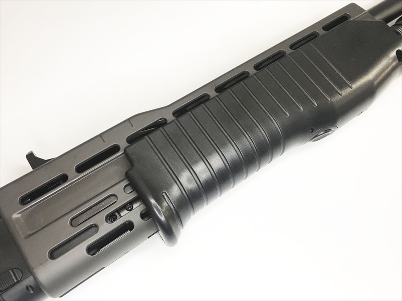 フォアエンドを引いてコッキングするショットガン独特の操作を再現し、アウターバレルには3本のインナーバレルを内蔵。1度の発射でホップをかけながら3発のBB弾を発射します。