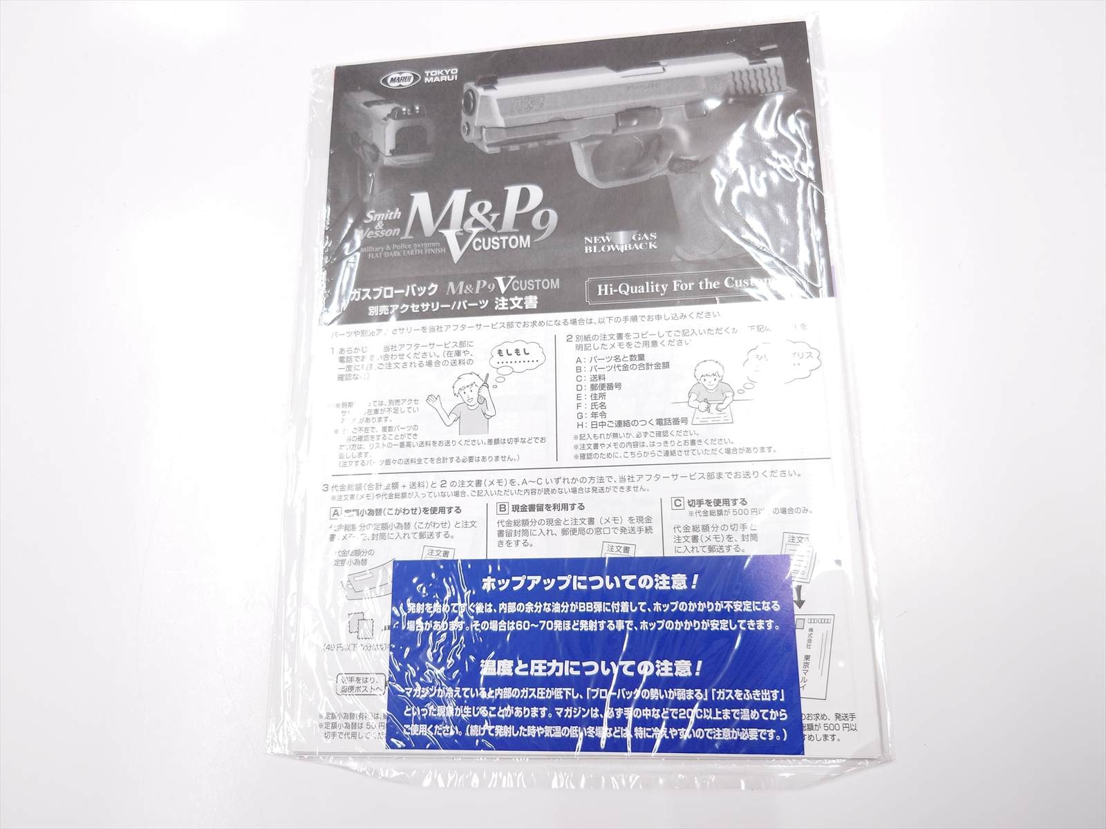 付属品:本体、箱、説明書、フォロワーストッパー、試射用BB弾、銃口キャップ