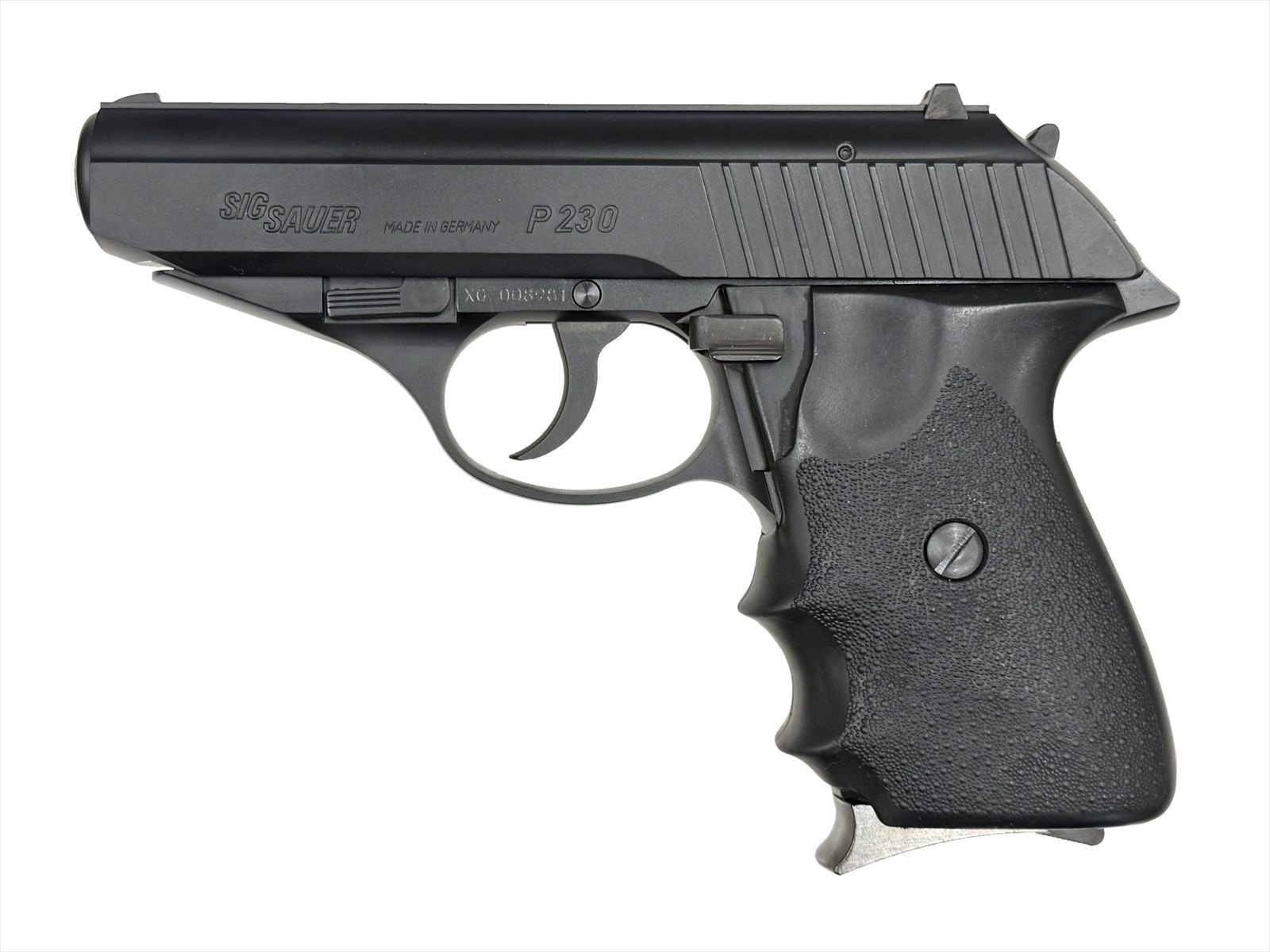 ヨーロッパの中型ピストルの伝統を受け継いだスマートなデザインのP230に、HOGUE社製実物グリップを装着した限定カスタムが登場。フレームに専用加工を施すことでフィンガーチャンネル付きの実物グリップを標準装備し、精悍なシルエットに変身。スライドのアメリカ輸出仕様の9mmクルツ口径の刻印やレバーの戻りに連動させて静かにハンマーを落とせる実物同様のデコッキング操作の再現もそのままお楽しみいただけます。見た目もメカニズムもリアリティ抜群の一挺です。