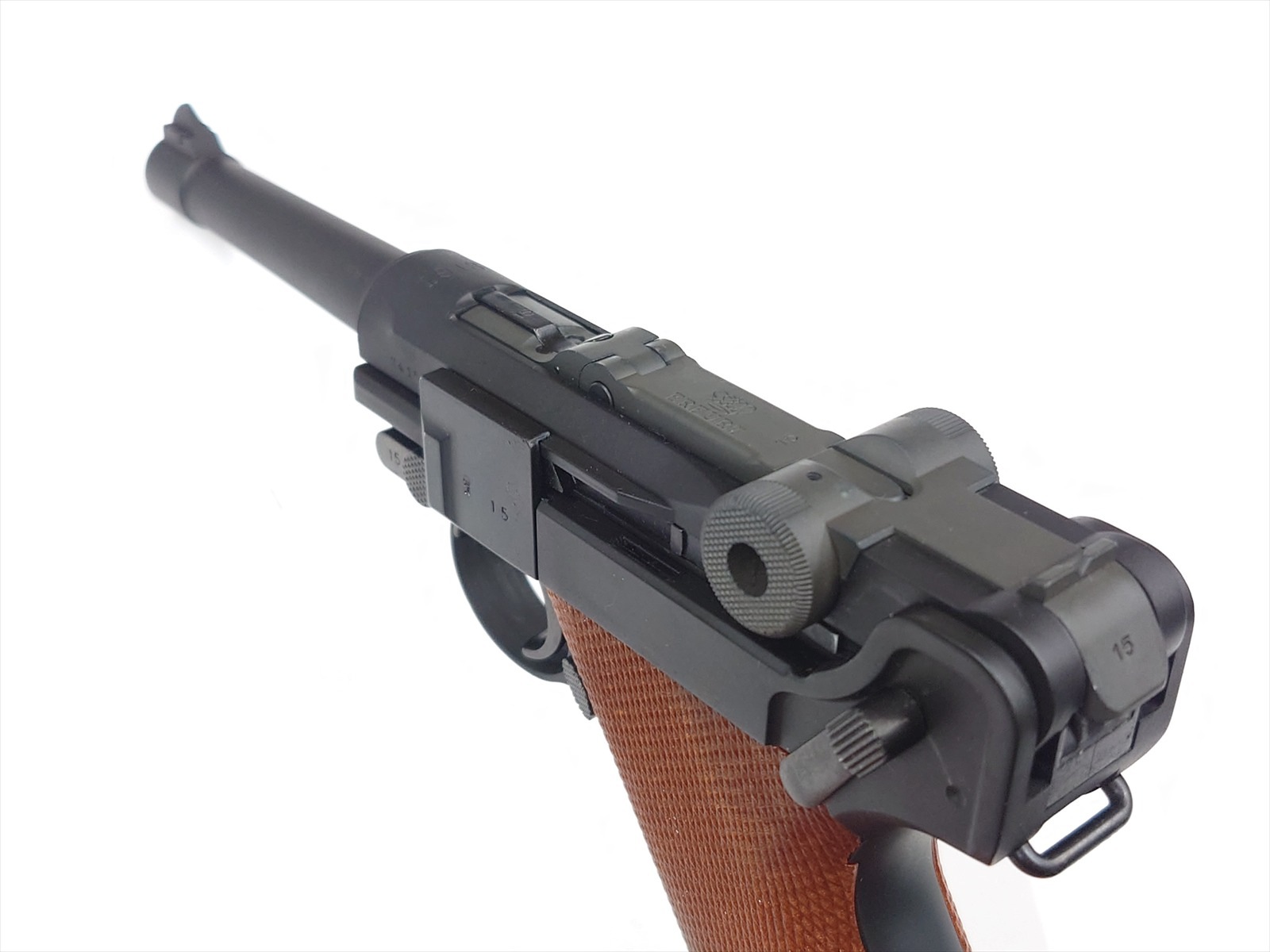 製品の仕様上、マガジンを抜き差しする際にはコッキング(トグルを起こす)動作が必要になります。