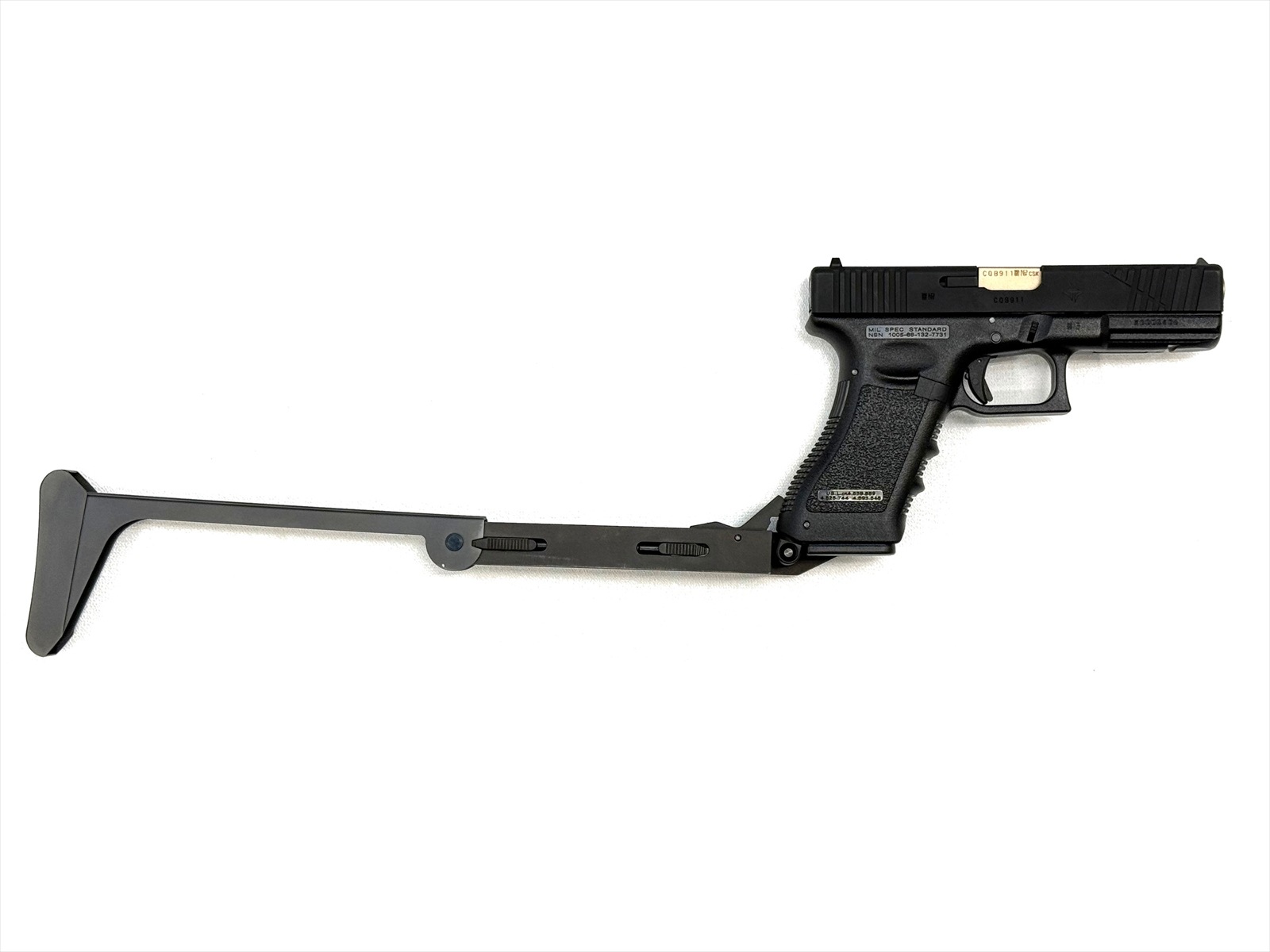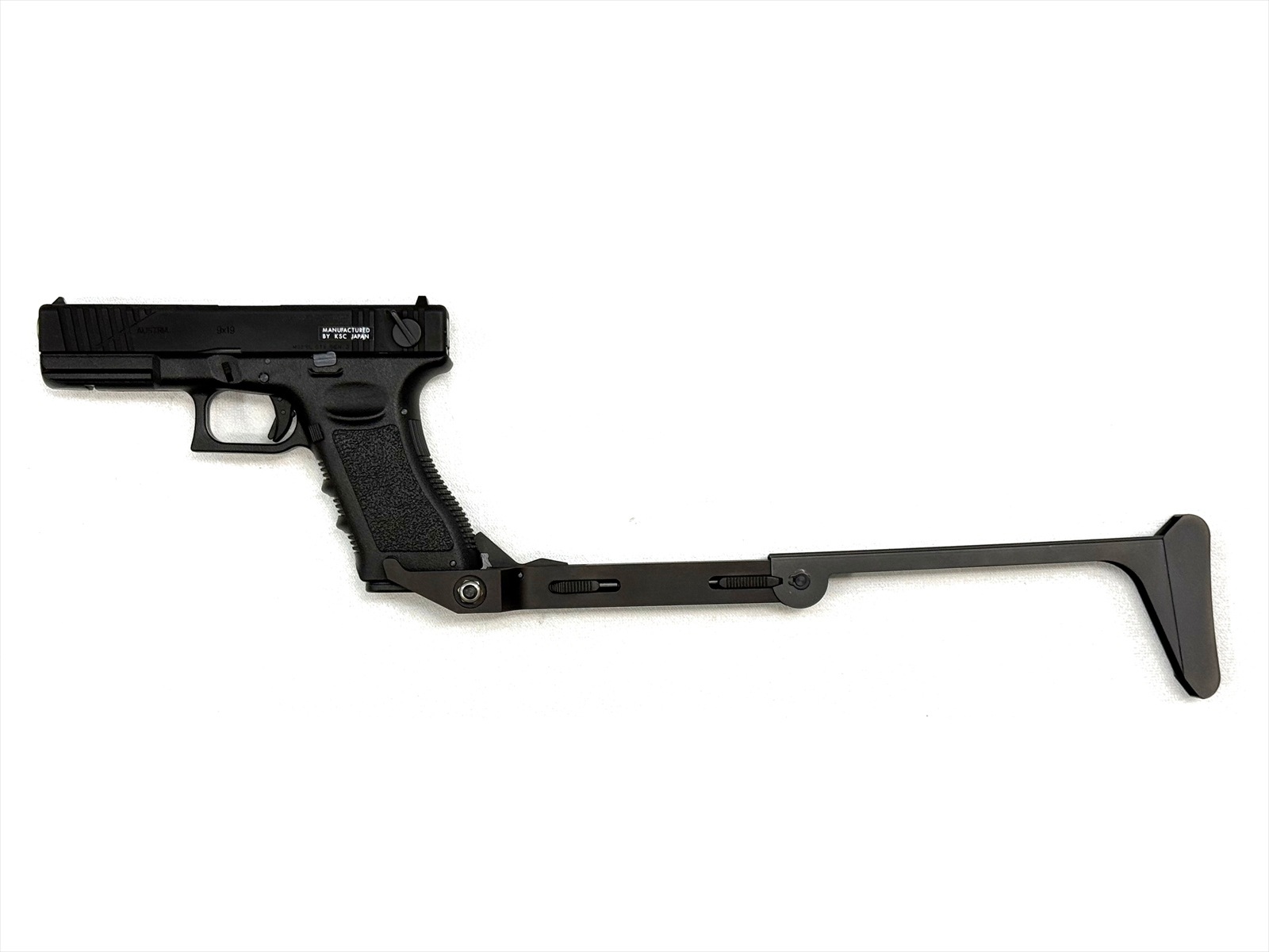 G18マシンピストルに「M93R用フォールディングストック」を合体させたミニマムサイズのCQBウェポンで、セミオートの精密射撃からフルオートの弾幕まで抜群の安定性を発揮します。
