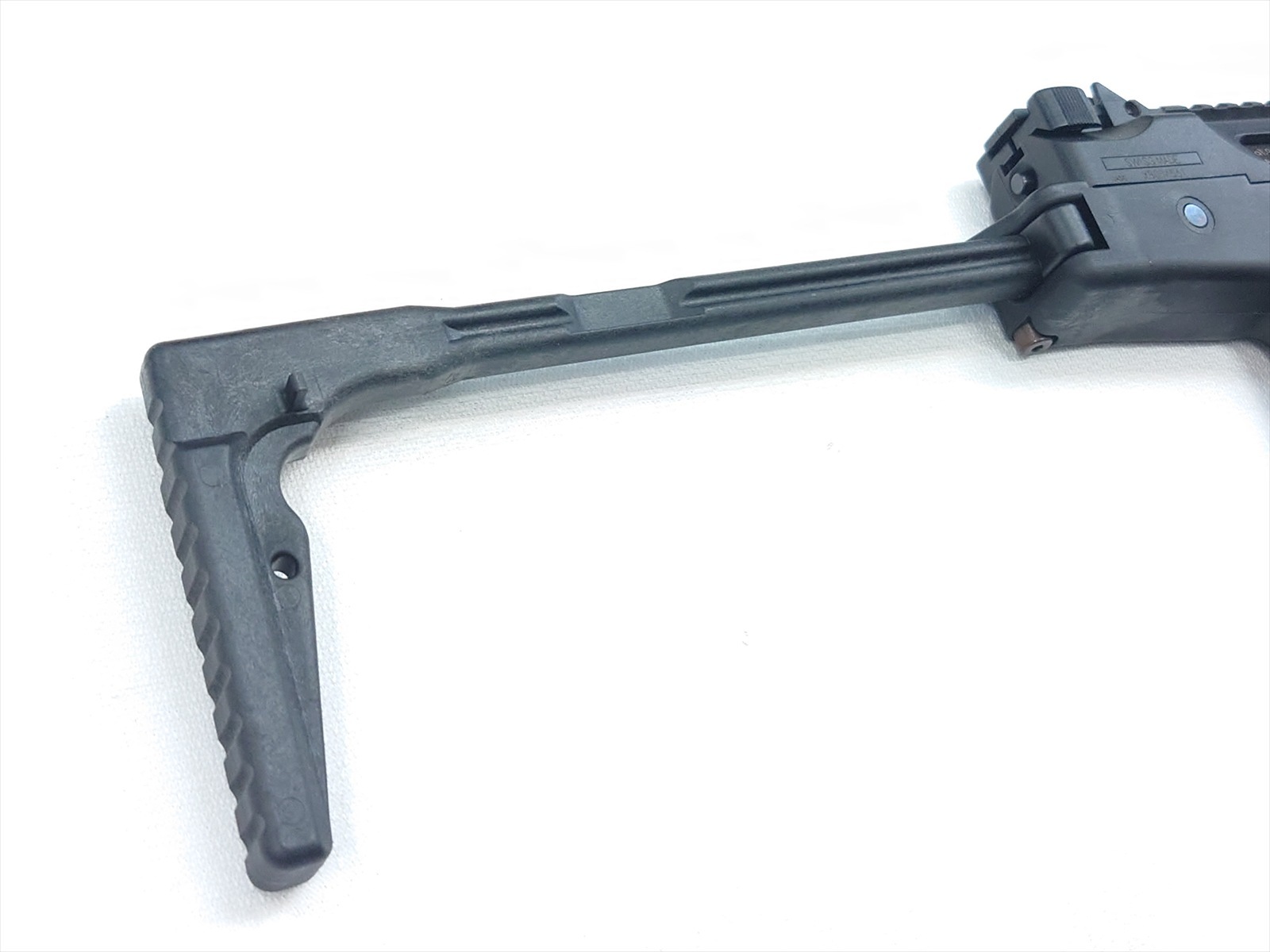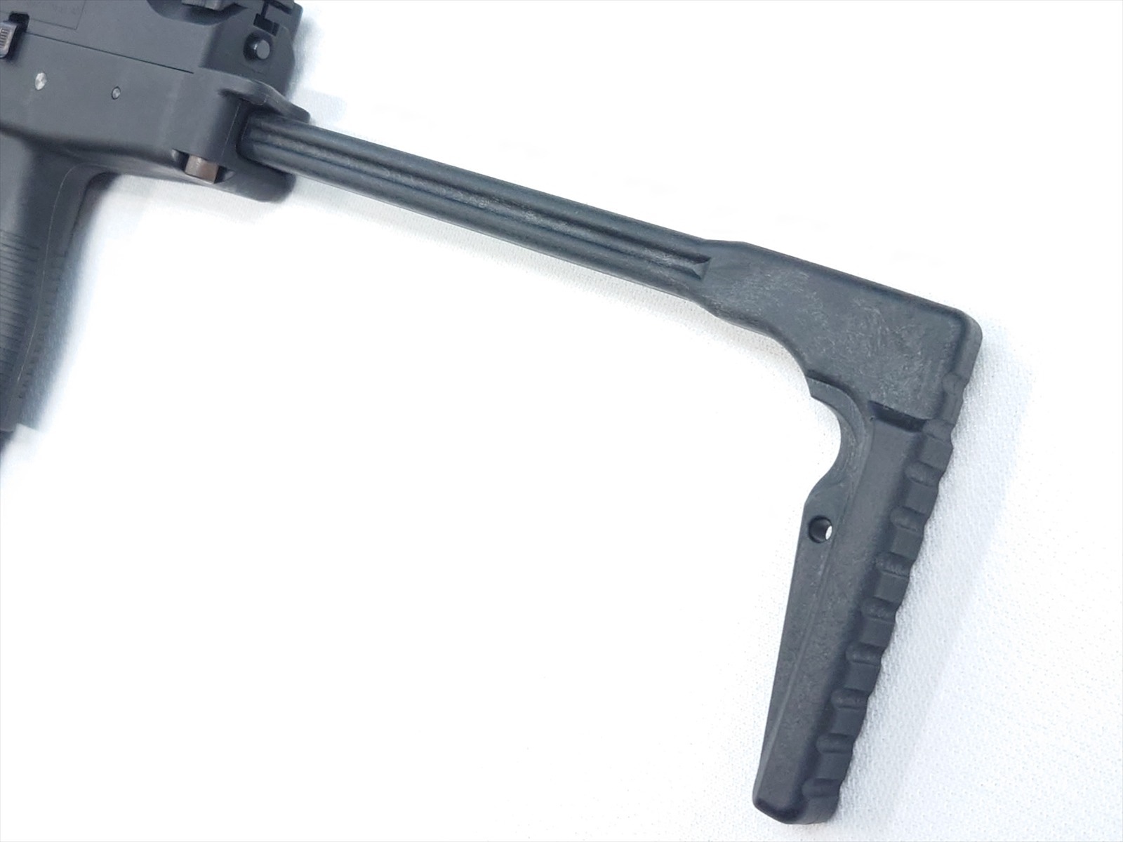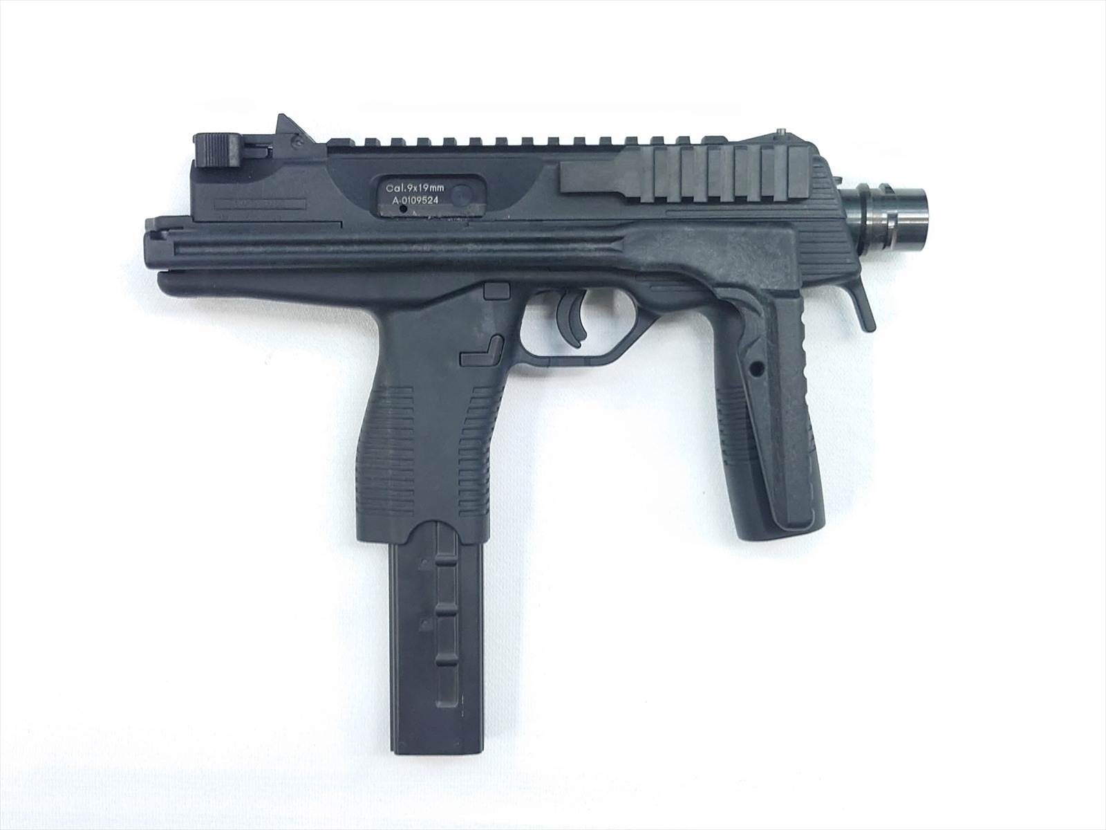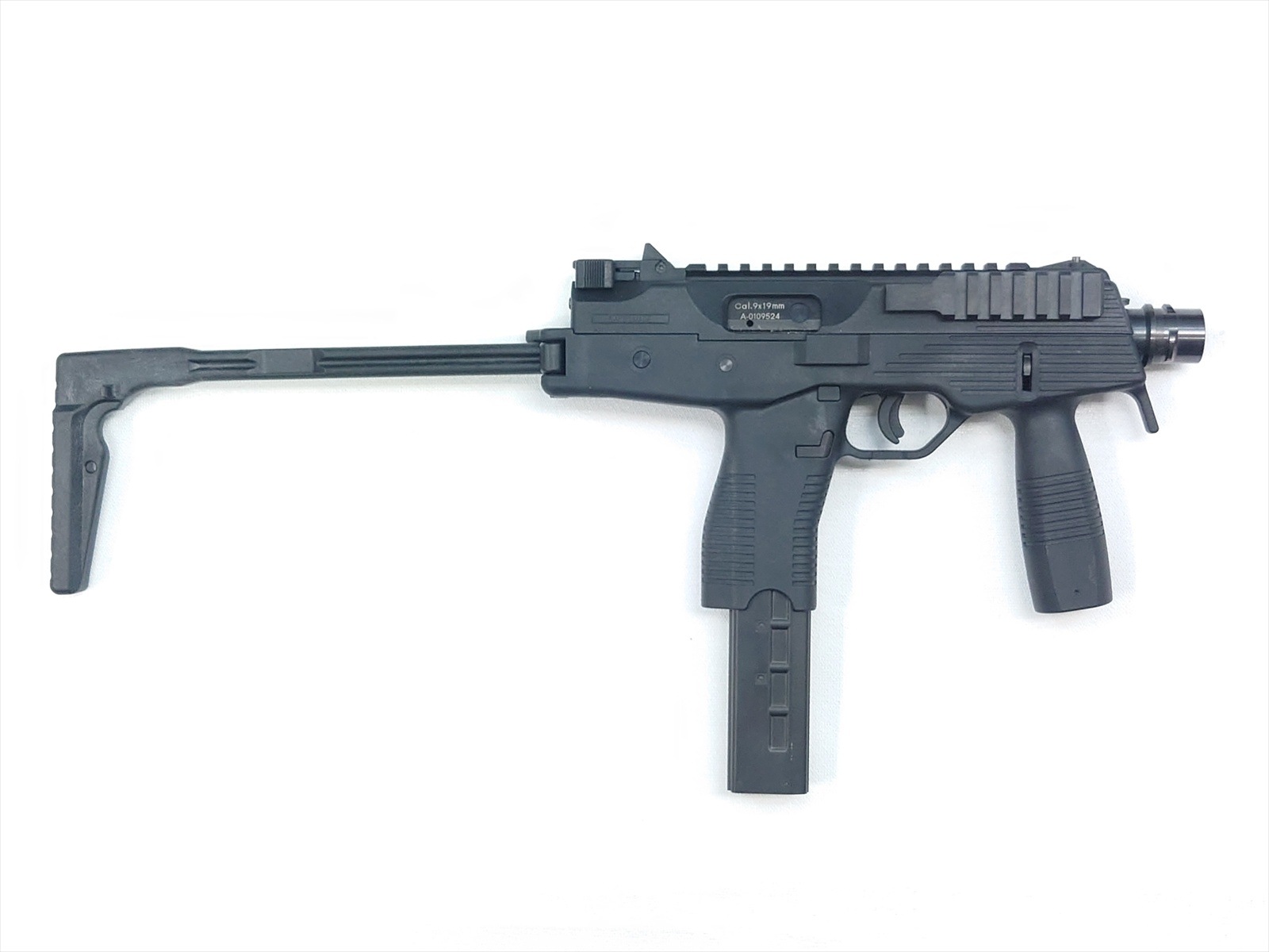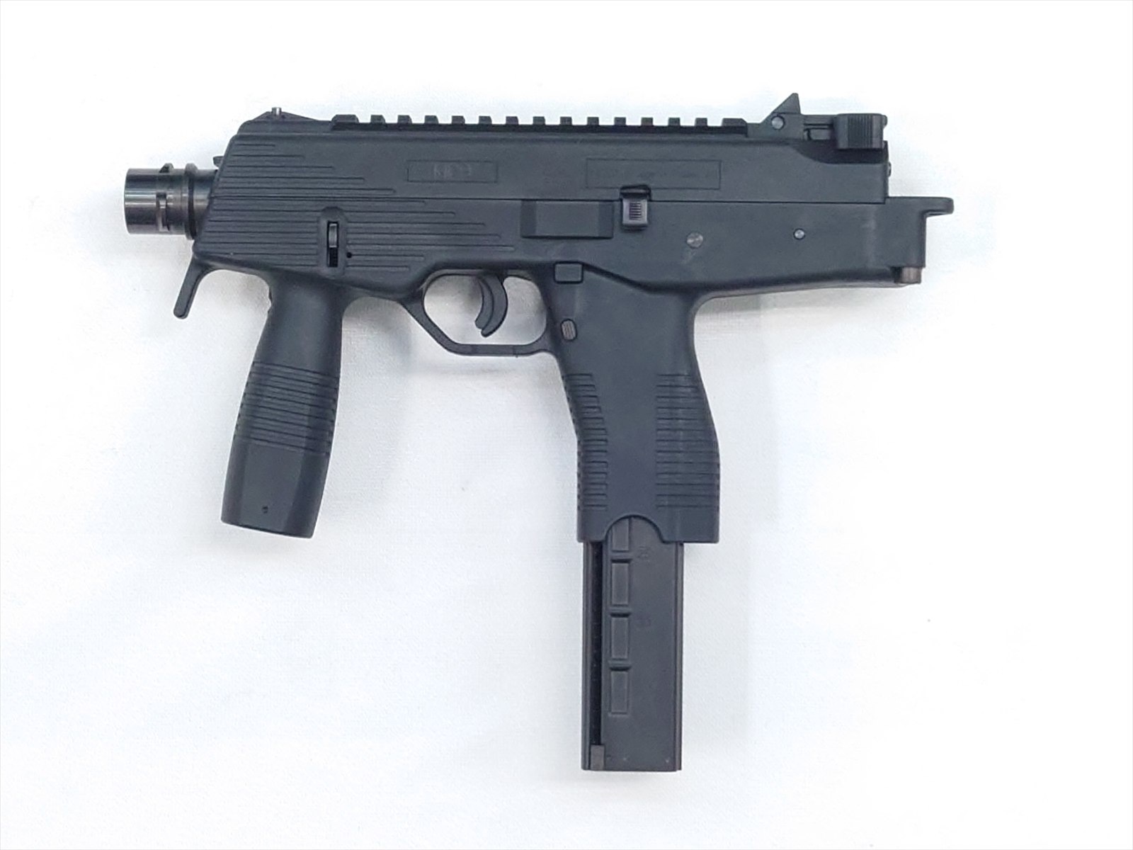 スイスにある軍警察/特殊部隊関連のメーカーにより、実戦的な改良が施されたTMPシリーズの後継機がこのモデル。瞬時に展開できるスイング・ストックをコンパクトに装備し、超ローマウントのスコープレイルとサイドのピカティニーレイルのコンボ・スタイルが迫力の機能美を完成させました。