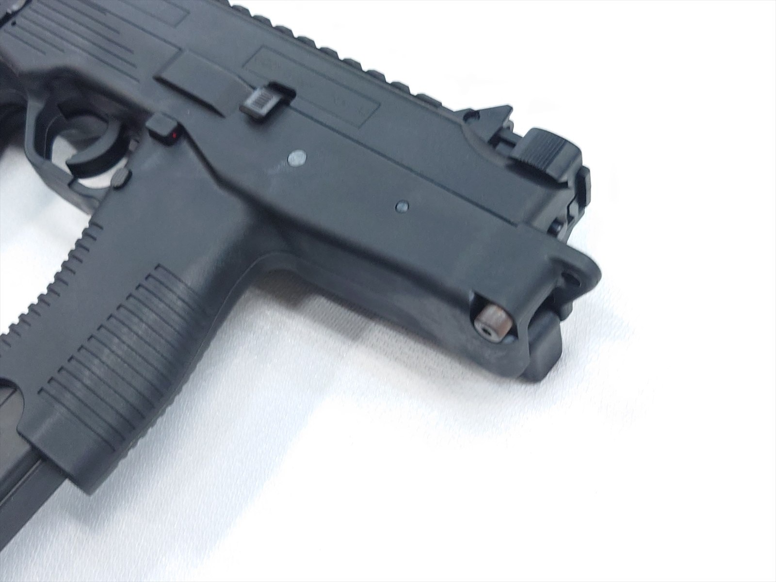 もちろんセーフトリガー、トライラグバレル、ゴーストリングサイトなどのフィーチャーをすべてライブで再現。フォアードアシスト形状となった「金属ボルト」が生み出す豪快なブローバックは、ピストルでは味わえないSMGならではのインパクト!剛性感の高まった「新ファイバー強化ナイロン」採用のフレーム/ストックがガッチリと反動を受け止めます。